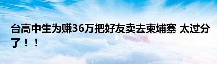 【臺(tái)高中生為賺36萬把好友賣去柬埔寨】據(jù)報(bào)道,臺(tái)灣省一名高中生為了賺取36萬元,竟然將自己的兩名發(fā)小騙去了柬埔寨三人交情長(zhǎng)達(dá)19年難抵金錢誘惑。