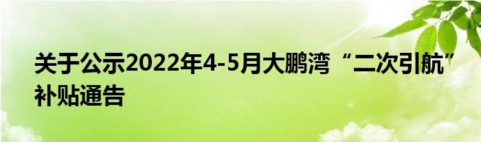 根據(jù)《深圳市交通運(yùn)輸局關(guān)于開展大鵬灣引航補(bǔ)貼申報(bào)工作的通知》(深交規(guī)〔2021〕5號(hào))的規(guī)定,市交通運(yùn)輸局開展了2022年4-5月大鵬灣“二次引航”補(bǔ)貼工作,經(jīng)審核,擬對(duì)下列20家企業(yè)給予總金額為人民幣16,964,038.56元的補(bǔ)貼,具體如下: