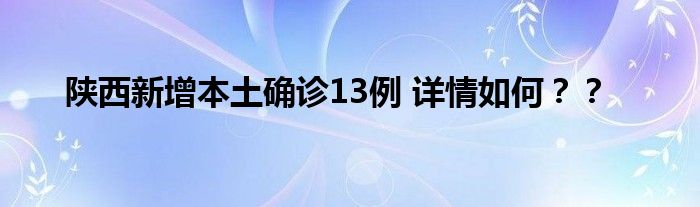 【陜西新增本土確診13例】近期,國內(nèi)疫情形勢依舊不容樂觀。據(jù)陜西衛(wèi)健委網(wǎng)站消息,8月22日,陜西新增本土確診13例。