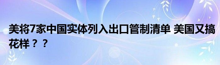 【美將7家中國實體列入出口管制清單】美國又搞新花樣?據報道,美將7家中國航天相關實體列入出口管制清單。具體是什么情況?