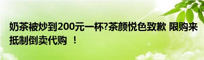 奶茶被炒到200元一杯?茶顏悅色致歉