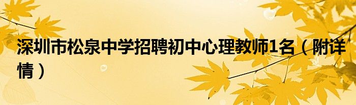 深圳市松泉中學(xué)發(fā)布了公開(kāi)招聘購(gòu)買(mǎi)服務(wù)教師的相關(guān)公告,需要招聘初中心理老師1名,符合條件的可自行投遞簡(jiǎn)歷。