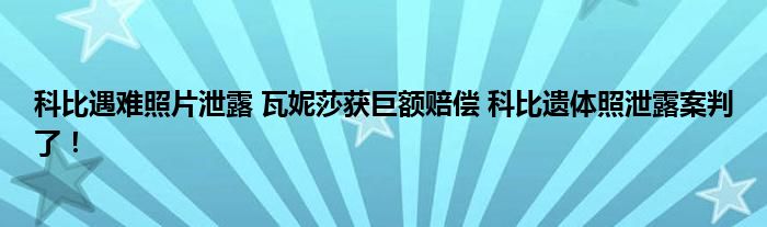8月24日,美國一聯(lián)邦陪審團對科比墜機遺體照片泄露一案做出判決,洛杉磯縣需向瓦妮莎賠付1600萬美元,向另一名原告克里斯托弗·切斯特賠償1500萬美元。