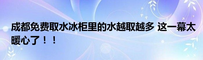 【成都免費取水冰柜里的水越取越多】近期,被高溫籠罩的四川成都街頭,出現了一些為戶外勞動者,免費提供冷飲補給的冰柜。今日#成都免費取水冰柜里的水越取越多#登上了熱搜,也是在網上引起了網友們的關注。