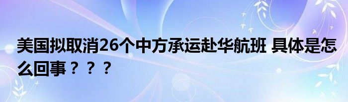 【美國擬取消26個中方承運赴華航班】近期隨著國際沖突的日益緊張,中美的關(guān)系也愈發(fā)緊張起來,中美關(guān)系正在遭遇越來越多的挑戰(zhàn),發(fā)展方向面臨被進一步引向歧途的危險。近期有消息傳出美國擬取消26個中方承運赴華航班,這究竟是怎么回事?
