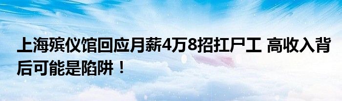 【上海殯儀館回應月薪4萬8招扛尸工】近日,“河南新鄉一女子稱在殯儀館上班一晚掙1600元”的言論被河南省新鄉市殯儀館辟謠。為何這種消息總是在網上傳播?
