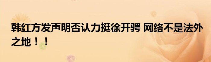 【韓紅方發聲明否認力挺徐開騁】8月26日,韓紅工作室發布嚴正聲明,稱韓紅不認識徐開騁,網絡上有關韓紅力挺徐開騁的微博截圖系他人偽造。網絡不是法外之地,堅決抵制一切惡意誹謗!