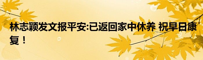 【林志穎發文報平安:已返回家中休養】車禍后林志穎首度發文報平安:已回家休養,大家別信謠!