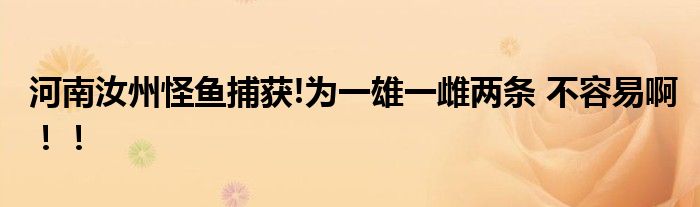 河南汝州怪魚捕獲!為一雄一雌兩條