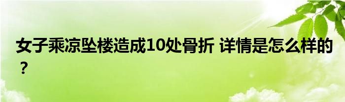 【女子乘涼墜樓造成10處骨折】近日,江蘇的陳女士在家中陽臺乘涼時失足從6米多高處摔下造成10處骨折。