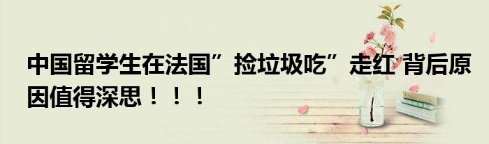 【中國留學生在法國"撿垃圾吃"走紅】在我們生活的地方時常會看到拿著垃圾袋撿垃圾的老人,近期一位中國留學生在法國"撿垃圾吃"走紅網絡,這究竟是怎么回事?