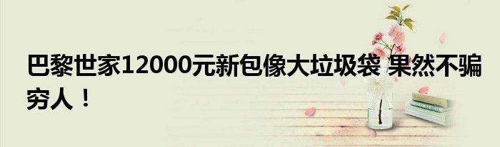【巴黎世家12000元新包像大垃圾袋】近日,知名奢侈品品牌Balenciaga(巴黎世家)推出了新款手提包,名為“Trash Pouch”,售價1790美元(約合人民幣12104元)。據官方介紹,這款包是旗下設計師在2022冬季360°時裝展中作品的一部分,主題為“放大和夸張”。確實挺夸張的!