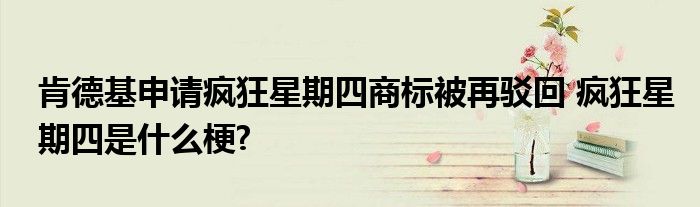 【肯德基申請瘋狂星期四商標被再駁回】每次到星期四,自然少不了各種瘋狂星期四V我50的文案。近日,肯德基申請瘋狂星期四商標被再駁回,瘋狂星期四是什么梗?