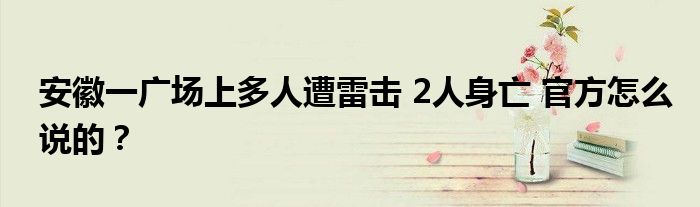 【安徽一廣場上多人遭雷擊 2人身亡】8月26日,安徽蕪湖 ,南陵縣一個廣場上,一些市民正在散步。突然 ,天空電閃雷鳴, 有幾人立即倒地,有2人不幸身亡 ,有幾個傷者正在醫院救治。