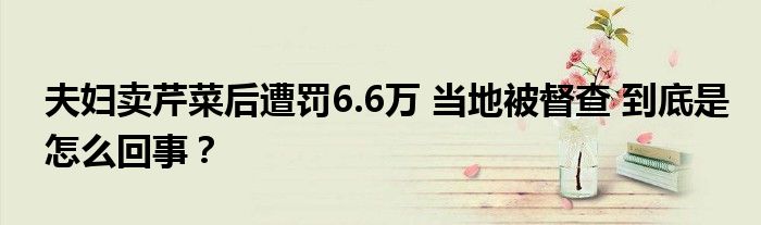 夫婦賣芹菜后遭罰6.6萬(wàn) 當(dāng)?shù)乇欢讲?/p>