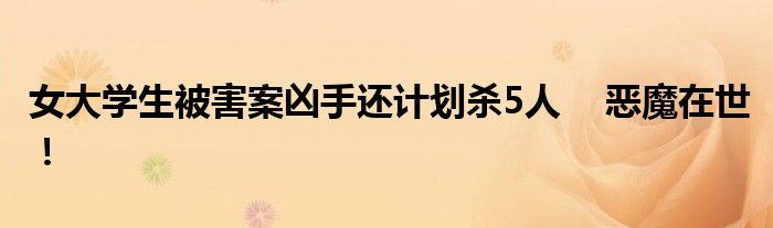 【女大學生被害案兇手還計劃殺5人】建議嚴懲重罰,3人留在世上,不足以平民憤!