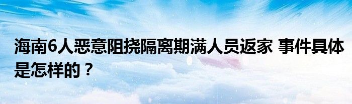 【海南6人惡意阻撓隔離期滿人員返家】近日,一篇“海南6人惡意阻撓隔離期滿人員返家”的報道登上了各大搜索引擎的熱搜榜,在網上引起了眾多網民的關注和熱議,小編也第一時間在網上查閱整理了一些相關資訊,下面一起來看下。