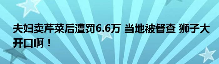 【夫婦賣芹菜后遭罰6.6萬 當(dāng)?shù)乇欢讲椤抠u幾塊錢菜被罰幾萬真是開眼了。陜西一對夫婦賣5斤芹菜被罰6.6萬元,當(dāng)?shù)馗本珠L:處罰確實有問題。