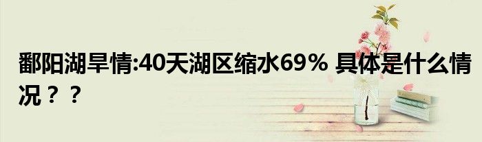 【鄱陽湖旱情:40天湖區縮水69%】7月以來,中國最大淡水湖鄱陽湖,與其所在的長江流域正遭遇“世紀干旱”。目前鄱陽湖旱情如何?