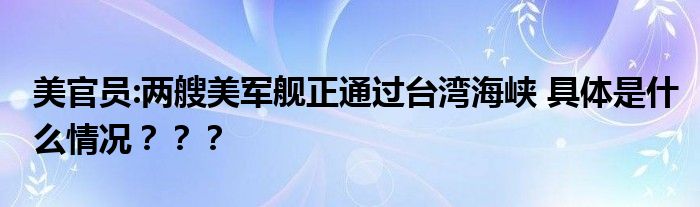 【美官員:兩艘美軍艦正通過臺灣海峽】近期隨著國際沖突的日益緊張,中美的關系也愈發緊張起來,中美關系正在遭遇越來越多的挑戰,發展方向面臨被進一步引向歧途的危險。有美官員表示兩艘美軍艦正通過臺灣海峽,這是怎么回事?