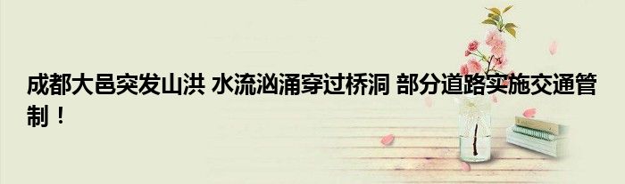 受局部強降雨影響,四川成都大邑突發山洪災害,水流洶涌穿過橋洞,部分道路實施交通管制。