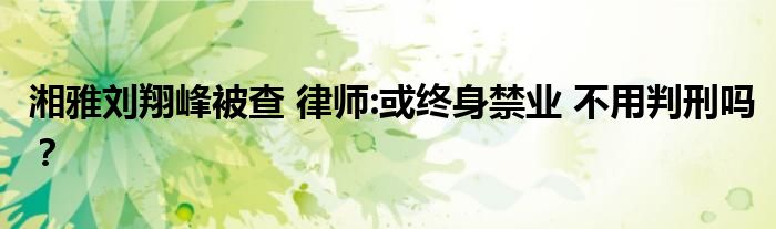 湘雅劉翔峰被查 律師:或終身禁業(yè)