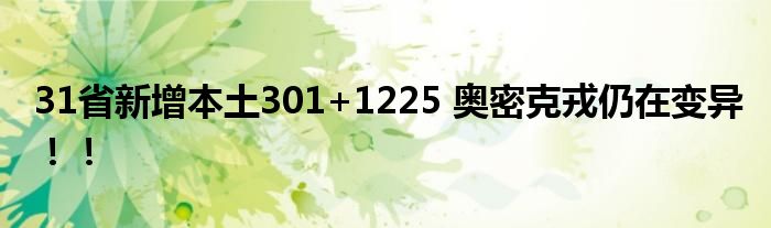 【31省新增本土301+1225】近期,國內疫情形勢復雜嚴峻,西藏、新疆等多地疫情呈多點散發流行態勢。