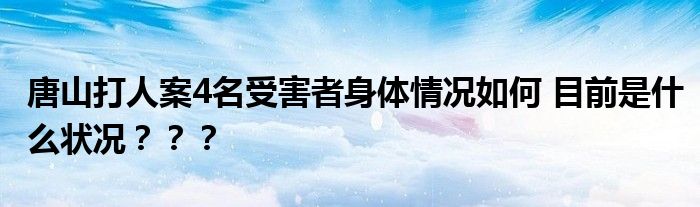 【唐山打人案4名受害者身體情況如何】“唐山打人”的事件引起了巨大的關注,唐山某路燒烤店,男性性騷擾一名女生挨罵,隨即動手打人,造成同來的一幫男人打女人,并把她拉出店進行持續毆打,目前9位嫌疑人已被抓捕歸案,目前事件的最新進展如何?4名受害者身體情況如何?