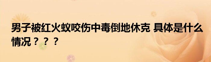 【男子被紅火蟻咬傷中毒倒地休克】紅火蟻的拉丁名意指“無敵的”螞蟻,難以防治而得名。其通用名,火蟻,則指被其蜇傷后會出現火灼感。紅火蟻分布廣泛,為極具破壞力入侵生物之一。在中國紅火蟻是入侵生物。近期有消息傳出男子被紅火蟻咬傷中毒倒地休克,具體是什么情況?