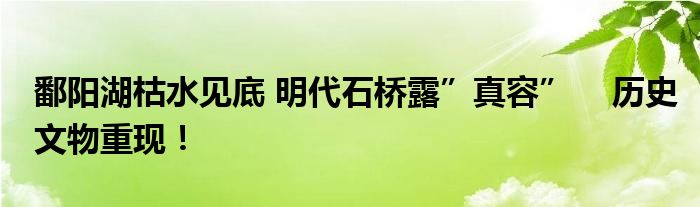 【鄱陽湖枯水見底 明代石橋露"真容"】高溫干旱給我們帶來了困擾,也帶來了一些重見歷史真跡的機會。