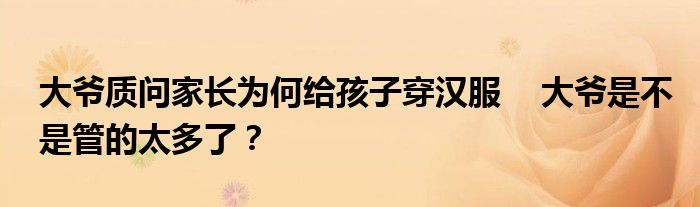 【大爺質問家長為何給孩子穿漢服】沒有觸犯法律,沒有傷風敗俗,為何不能穿?