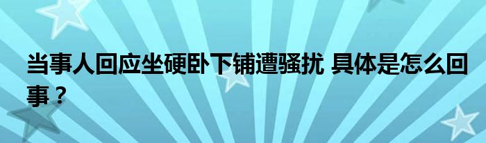 當(dāng)事人回應(yīng)坐硬臥下鋪遭騷擾