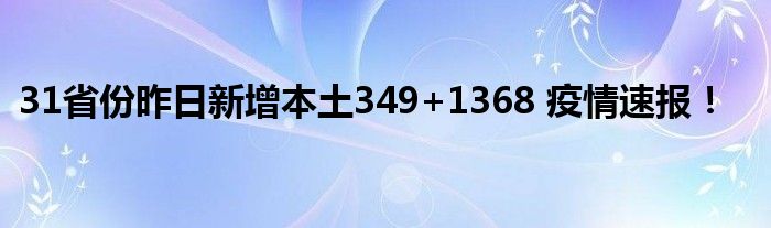 【31省份昨日新增本土349+1368】近年來全國飽受疫情影響,在全國人民的共同努力下,全國疫情終于得到有效控制,疫情形勢有所好轉(zhuǎn)。可沒等人們開心幾天,近期,全國疫情又出現(xiàn)了不同程度的反彈。各地不斷傳來的新增確診病例的消息。