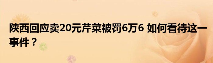 〖#陜西回應賣20元芹菜被罰6萬6#〗新聞報道匯總,日前,陜西榆林一菜商賣5斤芹菜收入20元,因檢驗不合格被罰6.6萬元。幾十塊錢的案值竟然能做出幾萬元的處罰,市場監管部門是不是失職了?