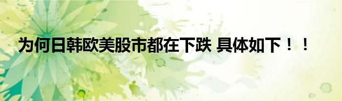 【為何日韓歐美股市都在下跌】近日一則消息沖上熱搜“為何日韓歐美股市都在下跌”,具體是什么情況?