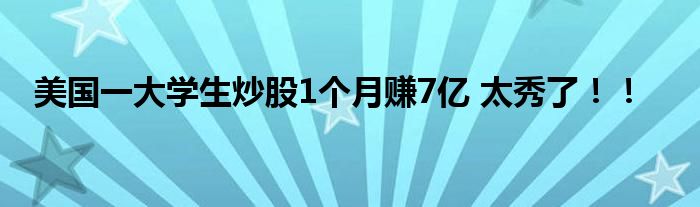 【美國一大學(xué)生炒股1個月賺7億】太秀了,一個月炒股賺1.1億美元,其本金2500美元。