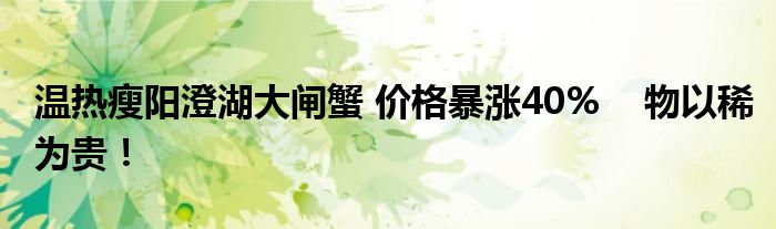 【高溫熱瘦陽澄湖大閘蟹 價格暴漲40%】產量影響了價格,只是合理的供需關系,而產量是由氣候所致。