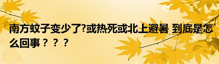 【南方蚊子變少了?或熱死或北上避暑】今年開年以來,全國天氣多變,轉眼到了夏天,高溫天氣遍布全國許多省份,不少地方的朋友已經被熱得苦不堪言,甚至連南方的蚊子也變少了,這是怎么回事?