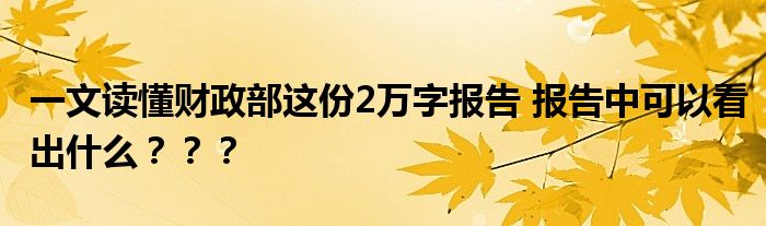一文讀懂財政部這份2萬字報告