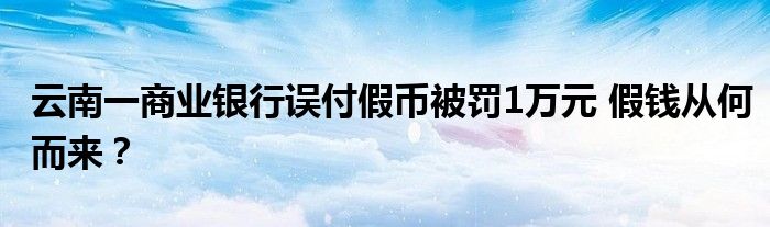 【云南一商業銀行誤付假幣被罰1萬元】云南一商業銀行誤付假幣被罰1萬元!該銀行曾因遺失許可證被罰。