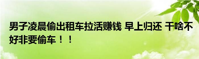 【男子凌晨偷出租車?yán)钯嶅X 早上歸還】據(jù)報(bào)道,吉林一男子凌晨偷出租車?yán)钯嶅X,早上歸還。真的是世界之大,無(wú)奇不有。既然自己也想努力賺錢,為什么還要偷人家的車呢?有手有腳的年輕人干啥不好,非要偷車,這下真是丟人丟到家了!