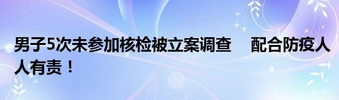 【男子5次未參加核檢被立案調查】不要因為個人而影響整個抗疫大局,畢竟國家付出了太多。