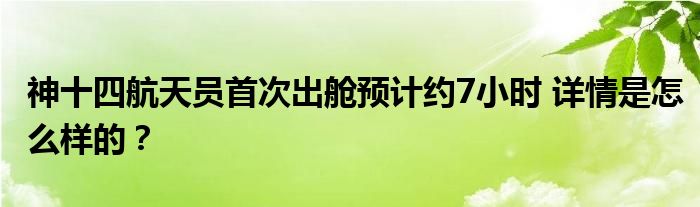 【神十四航天員首次出艙預計約7小時】今日,神舟十四號航天員乘組進行第一次出艙活動,據悉整個出艙活動預計約七小時。