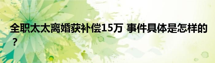 近日,一則“全職太太離婚獲補償15萬”消息引網上關注。