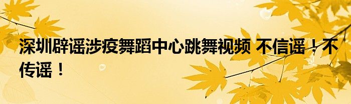 深圳辟謠涉疫舞蹈中心跳舞視頻