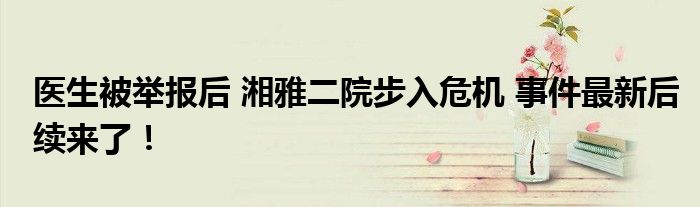 【#醫生被舉報后 湘雅二院步入危機#】日前,有網友反映中南大學湘雅二院劉翔峰醫療作風有問題,引起廣泛關注。湘雅二院再上熱搜,一患者家屬發聲,多次被舉報該院的劉翔峰醫生均無結果,之后的曝光更是令人瞠目結舌,翔峰事件余波未了:一個“壞醫生”會帶崩整個“湘雅系”嗎?