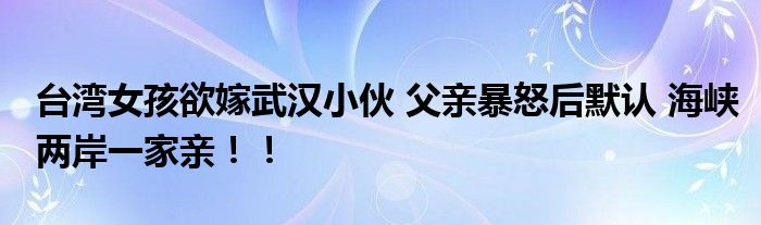 臺灣女孩欲嫁武漢小伙 父親暴怒后默認