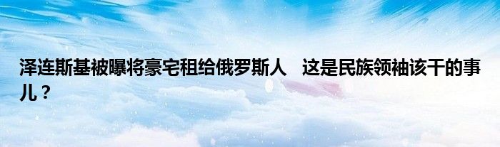 澤連斯基被曝將豪宅租給俄羅斯人
