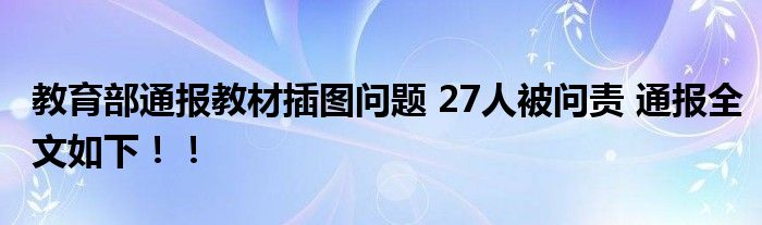 【教育部通報教材插圖問題 27人被問責】5月,人民教育出版社第十一套小學數學教材插圖問題受到社會廣泛關注。經查,教材插圖主要存在不美觀向上、不嚴肅規范、不細致準確三方面問題。依據有關規定,對有關單位及27名失職失責人員進行嚴肅追責問責。