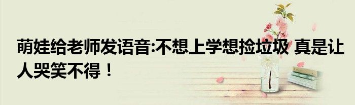 #萌娃給老師發語音:不想上學想撿垃圾#日前,一則“萌娃給老師發語音:不想上學想撿垃圾”話題備受輿論關注的焦點。據悉,最近有個視頻引起了許多人關注,在視頻中小孩子不想上學,他想撿垃圾、撿水瓶“工作掙錢”。這樣教育正確嗎?